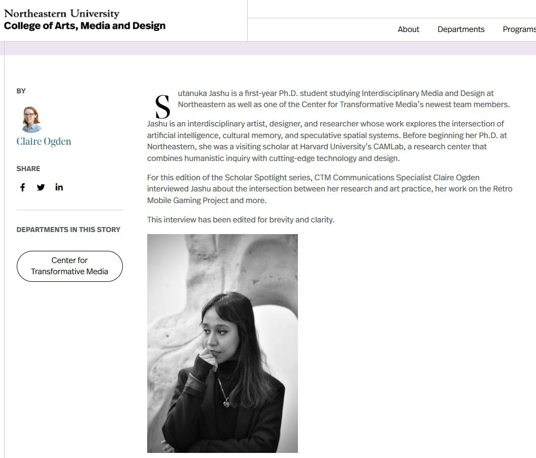 "For our October Scholar Spotlight, we sat down for an interview with Sutanuka Jashu (@archsutanuka), a first-year Ph.D. student in @northeasterncamd.